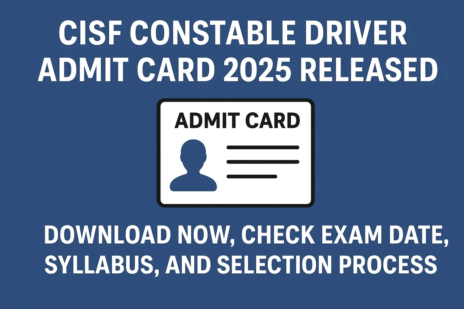 CISF Constable Driver Admit Card 2025 Released: Download Now, Check Exam Date And Notification